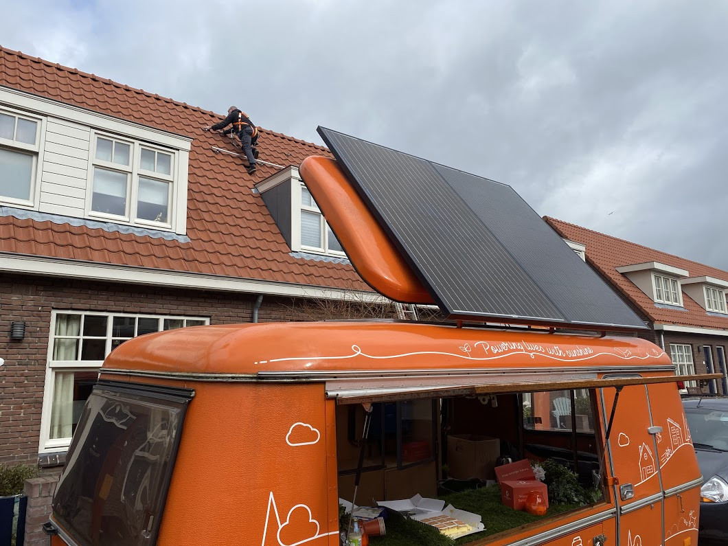 De eerste zonnepanelen liggen op het dak!